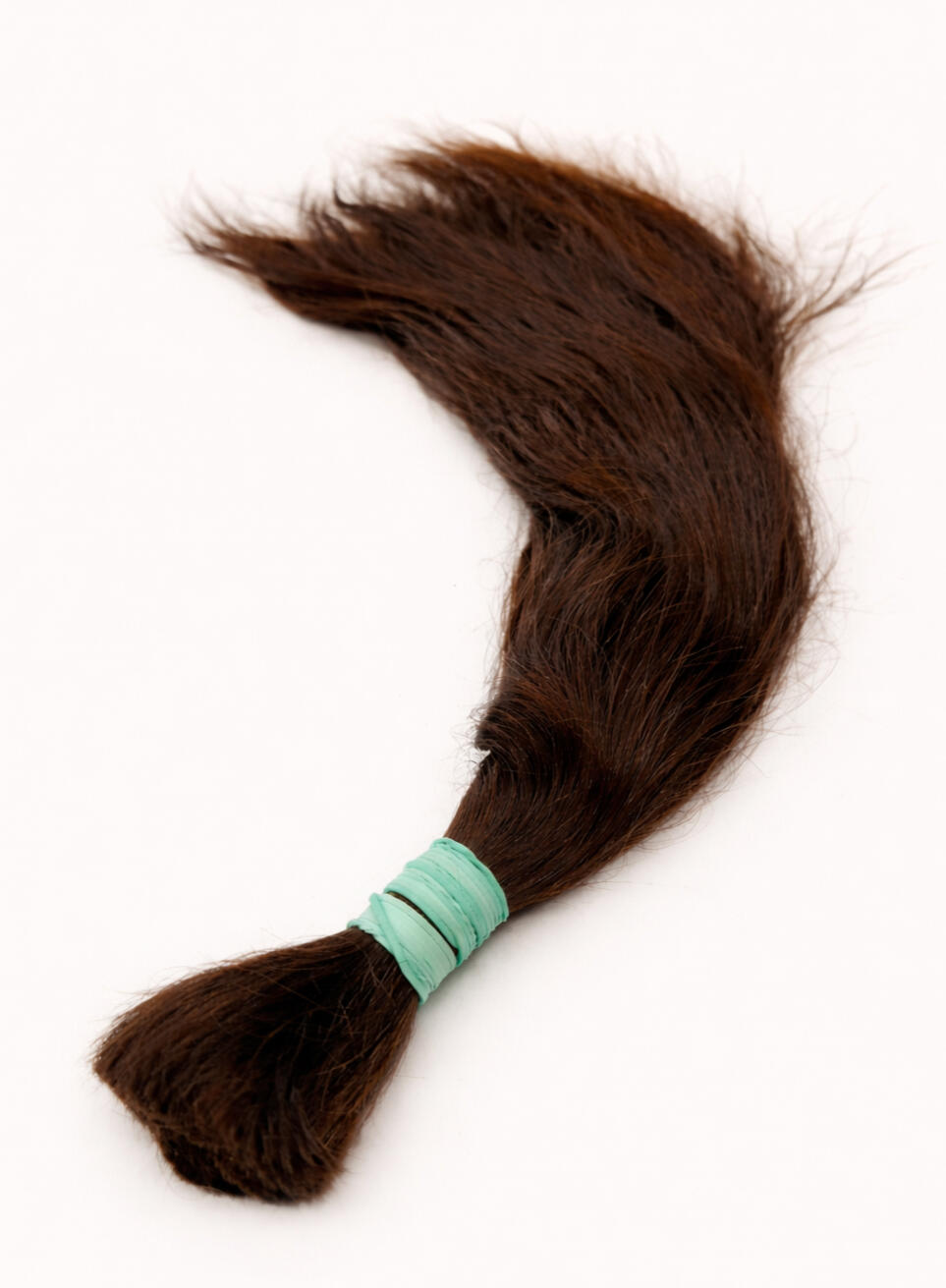 Hair must be securely tied and at least 14 inches (35cm) before cutting.